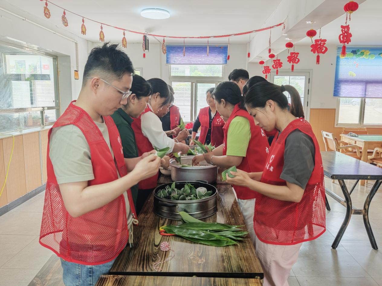 霍山县但家庙镇新时代文明实践所联合镇妇联在敬老院开展“粽香传情手牵手 银发笑颜心连心”主题活动,大家各展所长,分工合作,将节日的祝福包裹进一个个饱满可爱的粽子中,将温暖关怀传递给每一位老人。