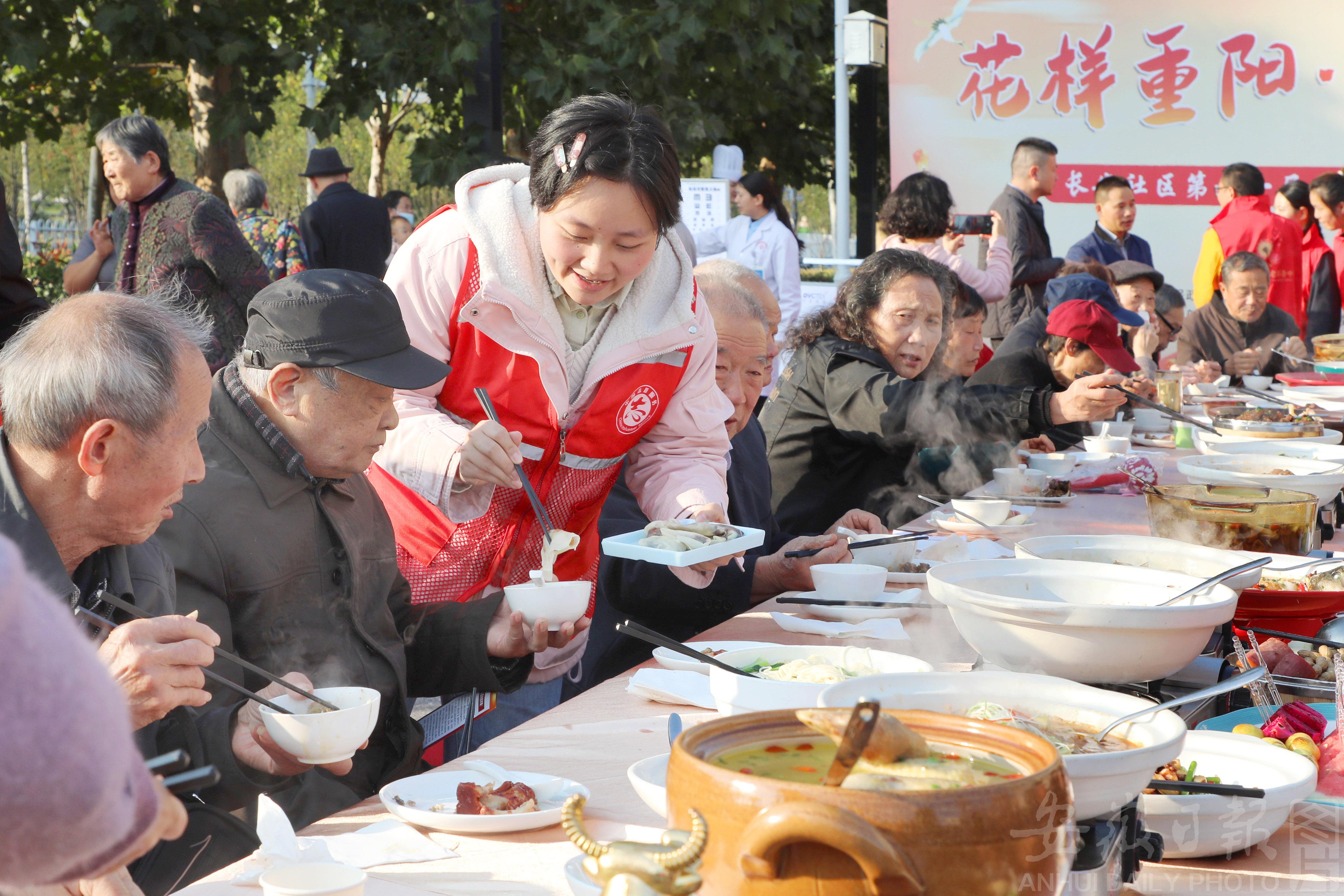 2025年10月22日,六安市金安区东市街道新时代文明实践所联合爱心企业等单位,举办“我们的节日・重阳——花样重阳‘老’有意思”文明集市暨长安社区第十一届“邻里文化节”长者长寿宴活动,活动将便民生活服务、社区文化需求和公益志愿助老有机结合,面向“银龄群体”现场设置义诊义剪、香囊制作、长者长寿宴、反诈宣传、发放健康养生锤等10余个特色摊位,将暖心服务与节日关怀送到老人“心坎上”,旨在弘扬尊老敬老传统美德,不断增强广大老年人的获得感、幸福感、安全感,让老年人老有所养、老有所乐、老有所为。(安徽新闻网 通讯员 田凯平 摄)