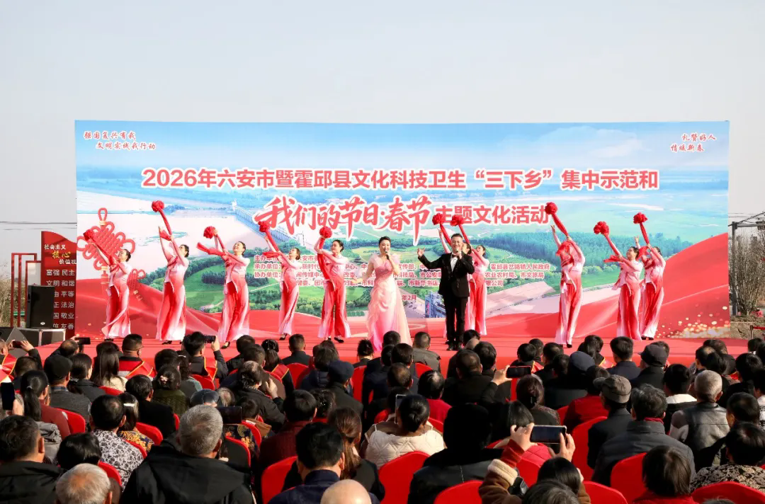 2月4日下午,位于淮河岸边的霍邱县岔路镇天堂村新时代文明实践站前广场热闹非凡。2026年六安市暨霍邱县文化科技卫生“三下乡”集中示范活动与“我们的节日·春节”主题文化活动在此举行,为当地群众带来一场兼具暖心服务与浓厚年味的文化盛宴。