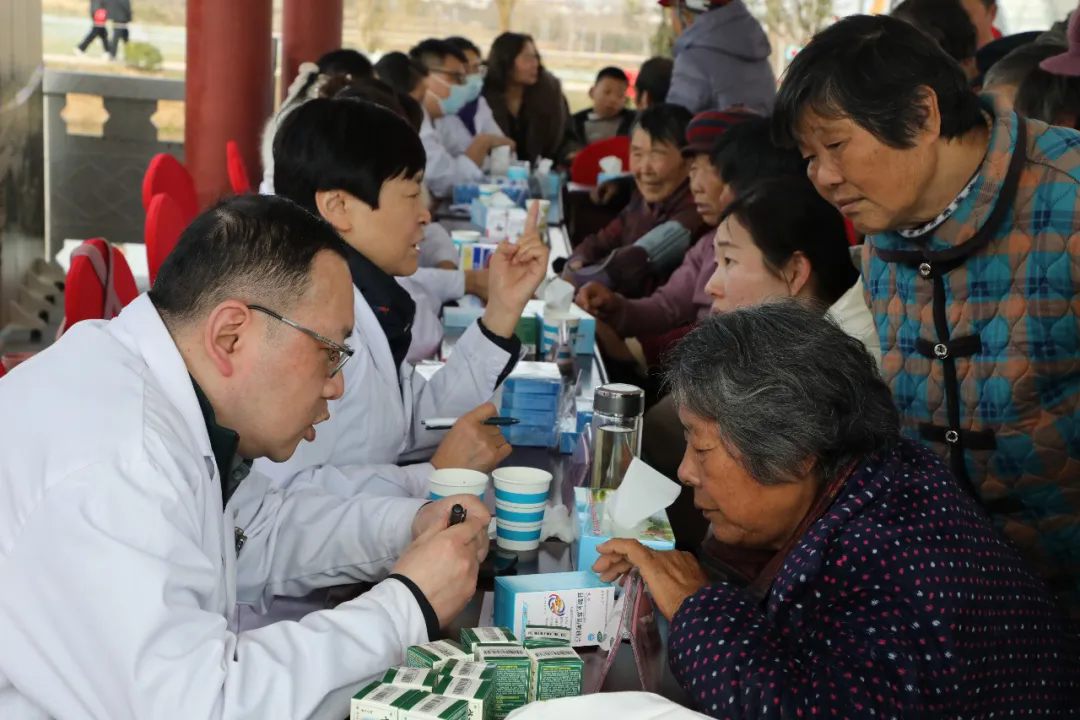 广场四周,“三下乡”服务台前人潮涌动。在宣传咨询服务区,来自文化、科技、卫生等部门的志愿者为群众提供政策讲解、科普宣传、健康咨询等服务。义诊台前,六安市人民医院多个科室的骨干医生耐心接诊,细致解答村民健康问题,并免费发放常用药品。