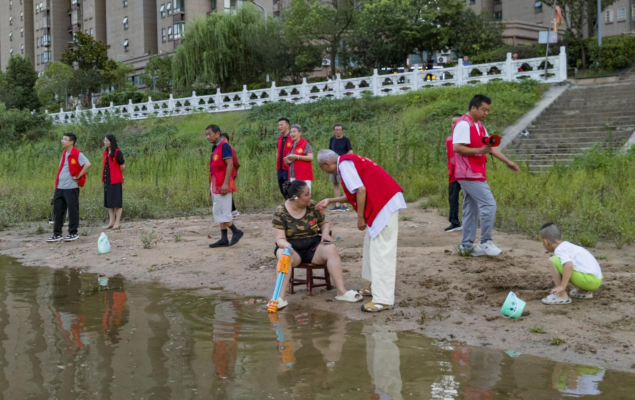 活动结束后,潭湾社区银龄童心志愿服务队开展史河水域的安全巡逻及劝导。他们手持喇叭,耐心劝导戏水儿童远离深水区,并向家长普及防溺水知识。入夏以来,这支由退休老人和热心居民组成的志愿服务队伍,已不间断安全巡逻32天,用“银发”经验守护“童心”安全,累计劝阻危险行为60余次,筑起了一道温暖的生命防线。