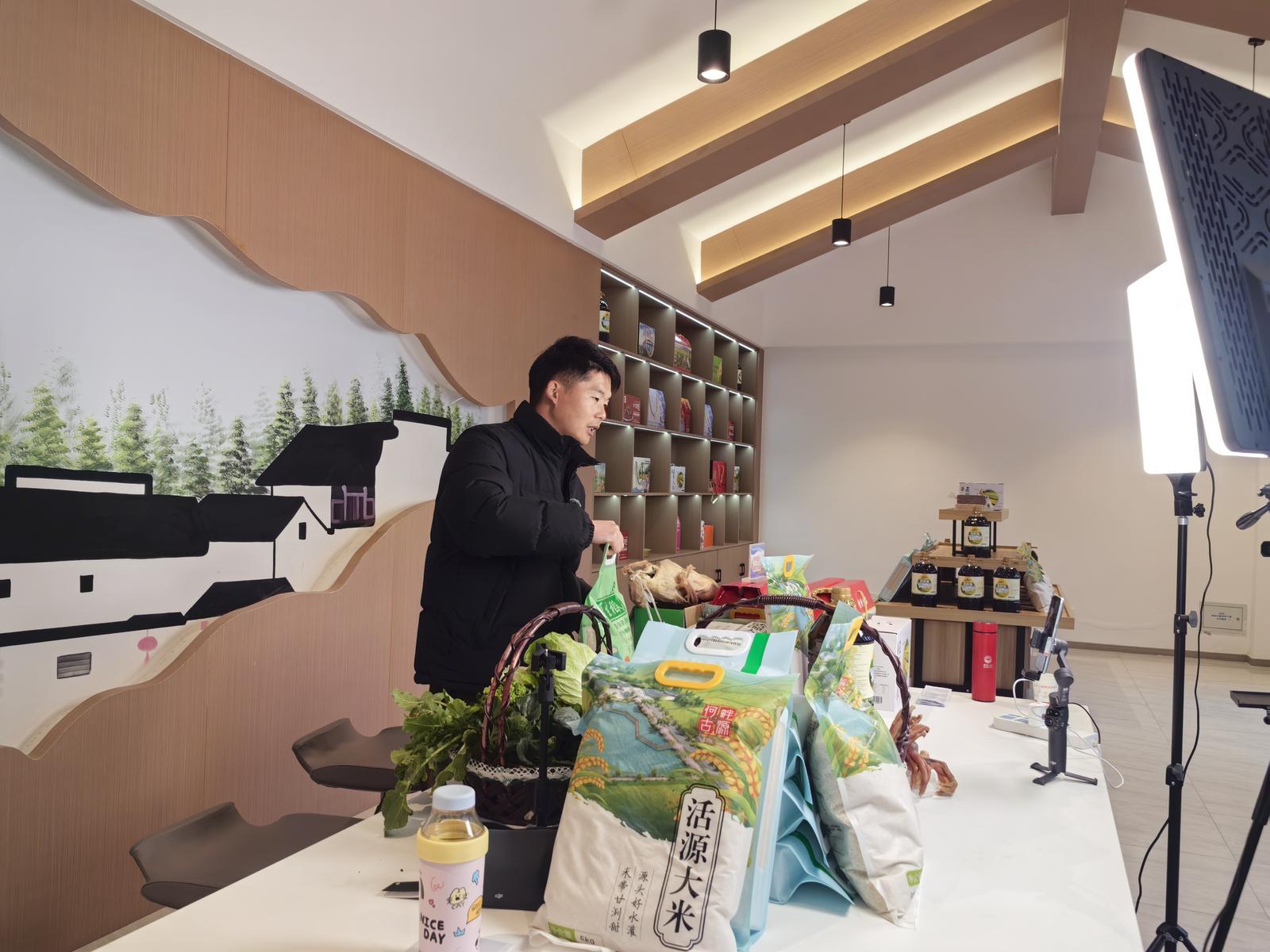 这个35平方米的空间,如今成了三个村共享的“数字会客厅”。自何山村建成这个配备专业声卡、补光灯和高速光纤的标准化直播间后,这里便成了周边村庄争相使用的“香饽饽”。