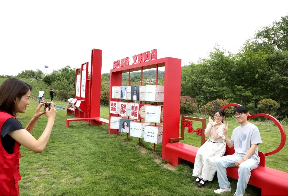 据介绍,八角塘村“新风堂”今年3月正式投用,700平方米的空间可容纳200余人就餐,同时,巧妙依托周边自然风光,打造出独具魅力的户外婚礼场地。“新风堂”还可根据新人需求,量身定制个性化婚礼元素。此外,为推进移风易俗,精心打造了“游园式”布景,融入剪纸、非遗糖画等特色元素,让宾客参加婚礼的同时,沉浸式感受传统文化魅力,浸润文明新风。